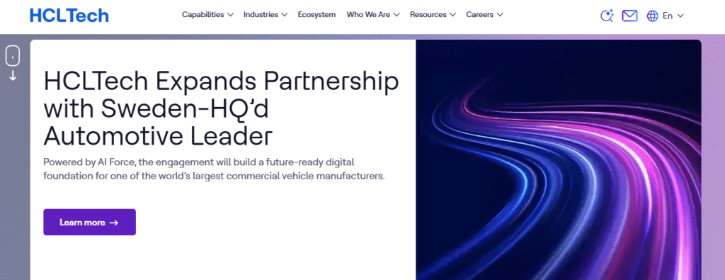 - HCL Tech delivered IoT-based predictive maintenance for global automotive clients.